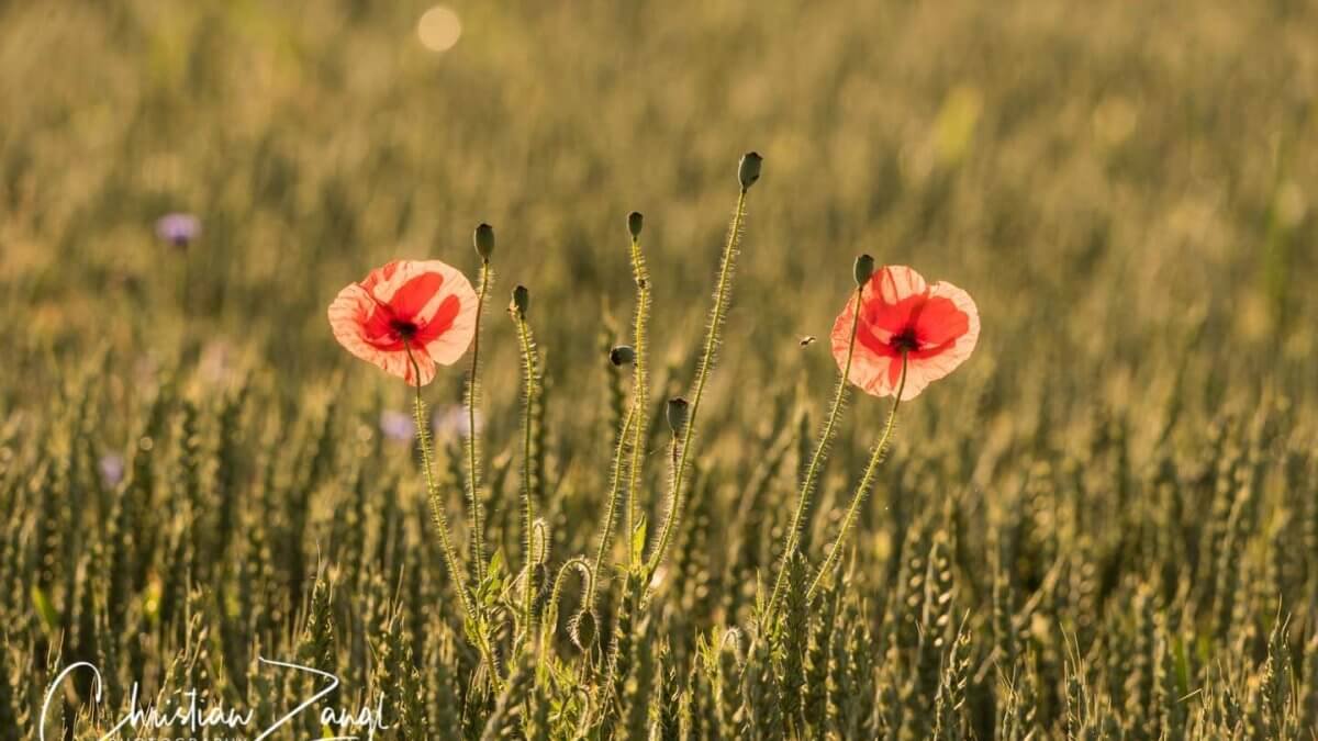 Ich möchte Ihnen an einem Motiv zeigen, wie ich das gemacht habe: Schon am Abend zuvor entdeckte ich im Feld vereinzelte Mohnblüten, die ihre Köpfe über die hellgrünen Ähren streckten. Ich entschied mich, frühmorgens beim ersten Sonnenlicht in der Goldenen Stunde zu fotografieren, um vom warmen Licht und der tiefstehenden Sonne profitieren zu können. Dabei hatte ich ein Sigma Makro 105 mm, das 70-200 mm Tele-Zoom und das grosse mit einer Brennweite von 150-600 mm mit dabei.