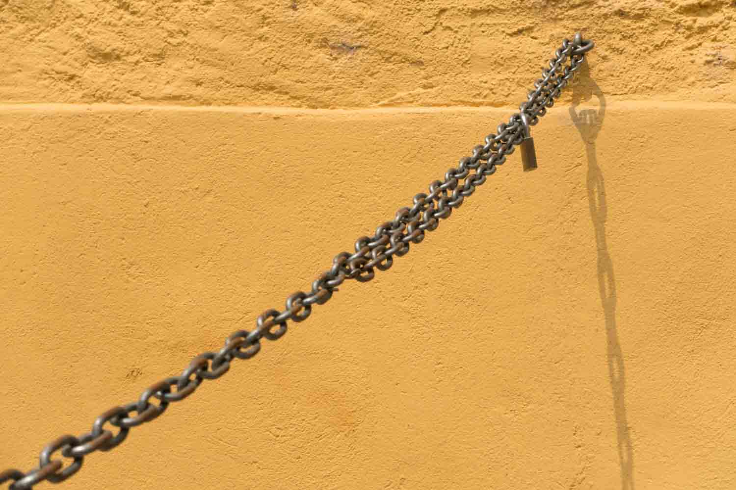 Kette an oranger Mauer in der Altstadt, Sony DSC-RX100iii, Zeiss f/1.8-2.8 24-70 mm, 58 mm KB, 1/125s, f/6.3, ISO 125