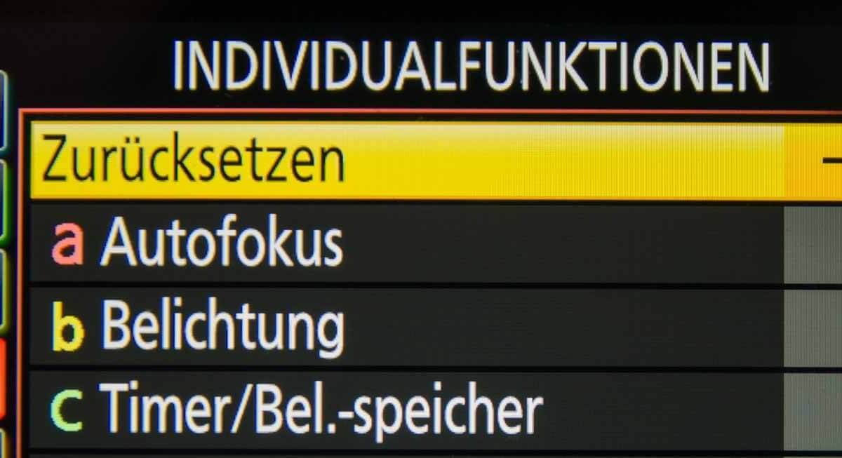 Informieren Sie sich in der Bedienungsanleitung, wie Sie die Individualfunktionen aufrufen können. Bei Nikon-Kameras finden Sie diese unter dem Bleistiftsymbol im Kameramenü.