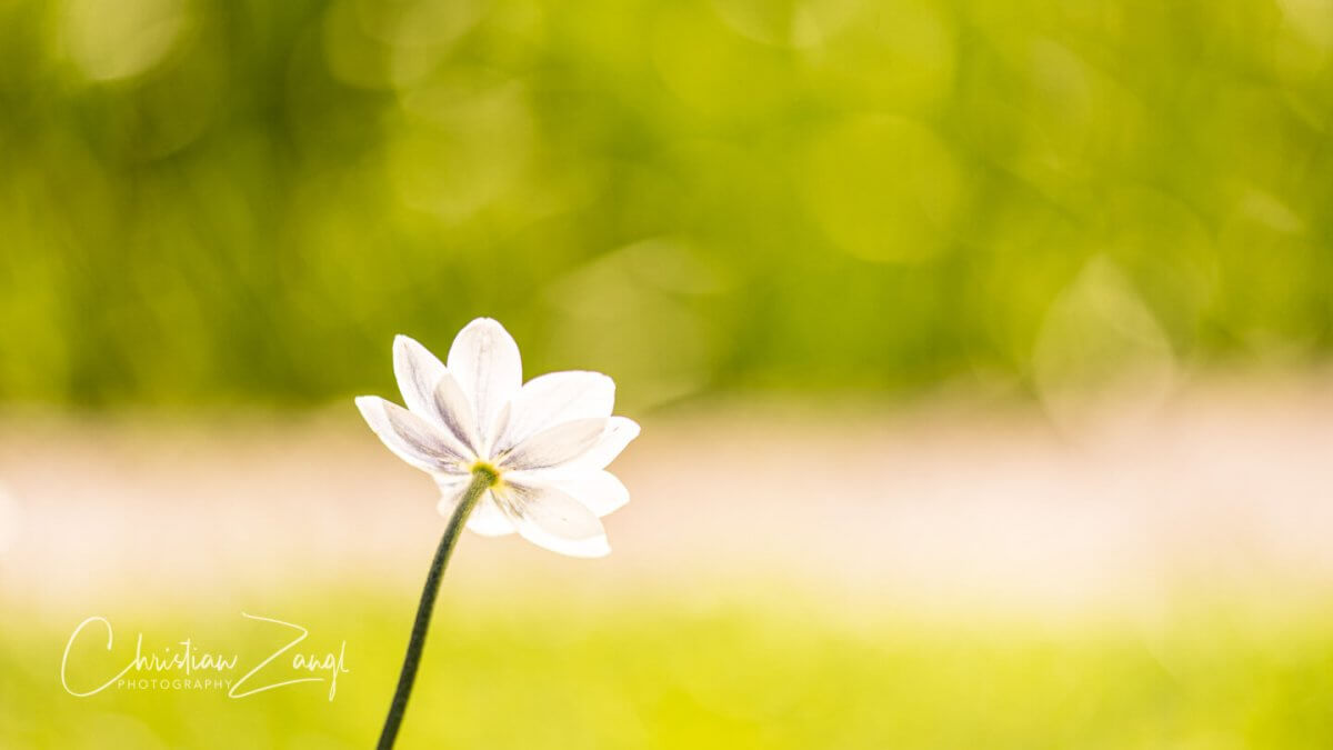 Je weniger auf dem Bild ist, desto mehr wirkt das Motiv. Diese einzelne Blüte hebt sich vom dreigeteilten Hintergrund, der in der Unschärfe verschwindet, schön ab. Es war in den frühen Vormittagsstunden, als die Sonne im Gegenlicht die Struktur der Blütenblätter wunderbar unterstrich.